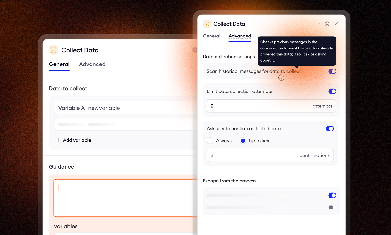 Improved control over Escape condition in Collect Data Block
